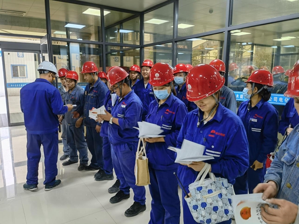 神木煤化工能源公司發放新《安全生產法》書籍。郭帥 攝