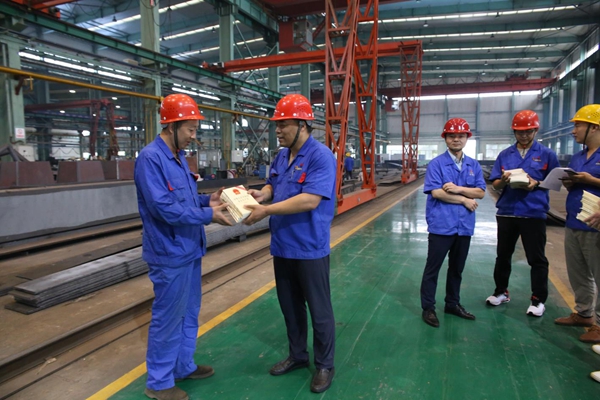 西安重裝陜西中環公司為一線職工發放新《安全生產法》資料。 侯永建 攝